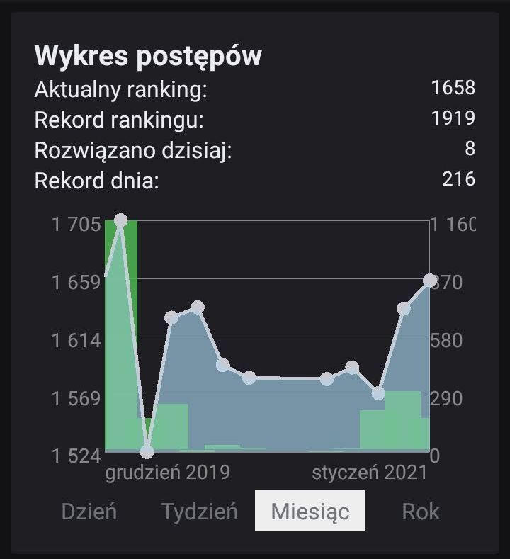 Od wybuchu plandemii odpuściłem sobie szachy. Później pojawiły się inne problemy jeszcze większe. Choć udało mi się ostatnio wziąć udział w jednym lokalnym turnieju. Spodziewałem się makabrycznego wyniku. Jednak okazało się że wynik jest satysfakcjonujący. Powodem tego jest poświęcanie przeze mnie wolnego czasu na ćwiczenie. Choćby proste ale ćwiczenie. Dlatego moje statystyki wyglądają tak.